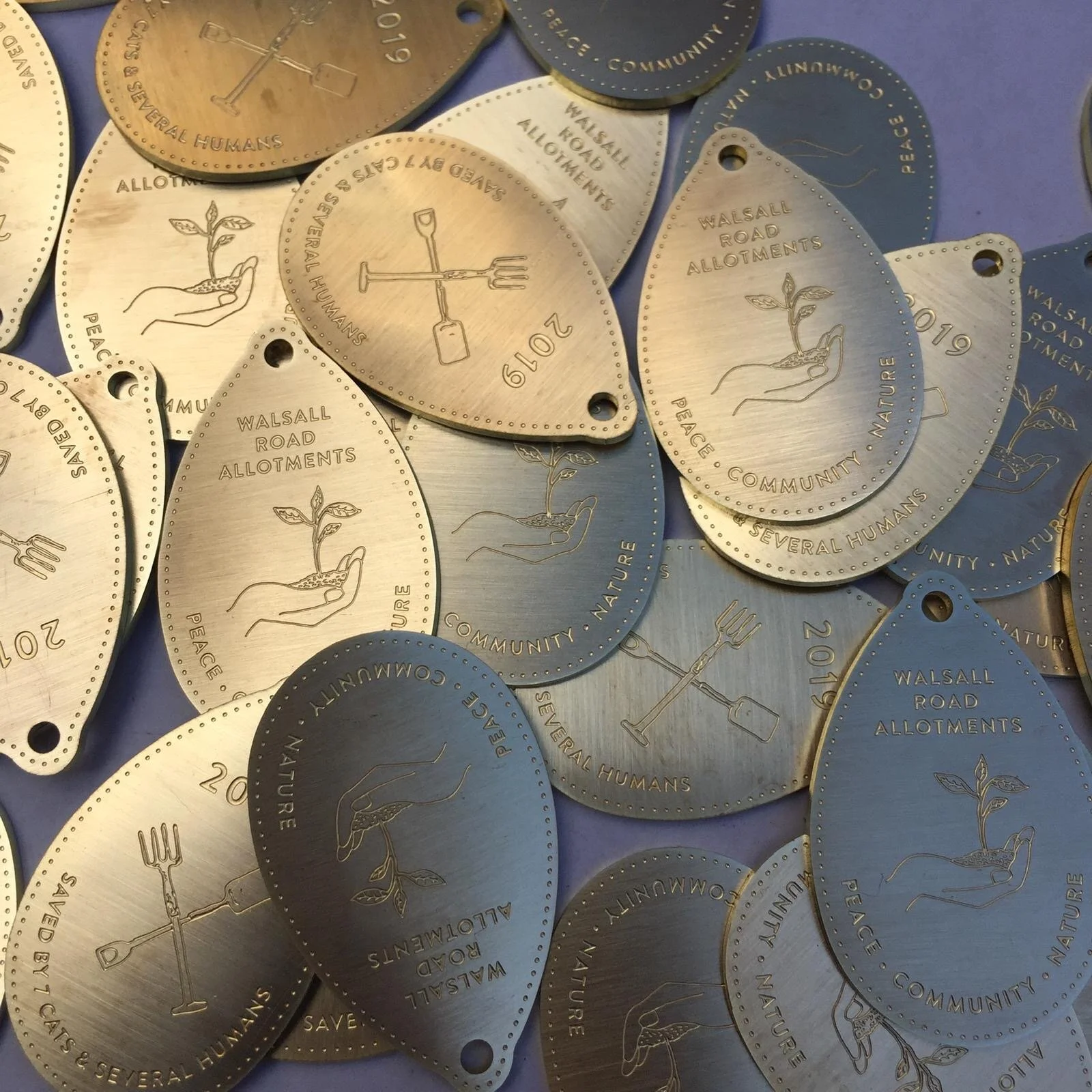 The tokens celebrate the victorious campaign led by seven cats and several humans in 2019 to protect the Walsall Road Allotments, established in 1907 in Perry Barr, Birmingham, from being destroyed as part of the Commonwealth Games 2022 regeneration masterplan.